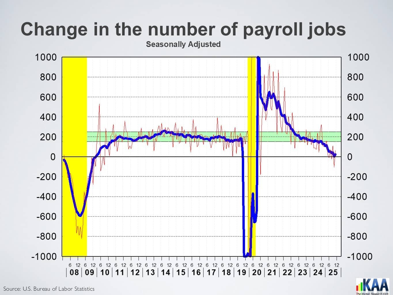 According to the Bureau of Labor Statistics (BLS), payroll employment growth—which averaged between 150 to 250,000 jobs per month before the pandemic—has slowed to just 64,000 in November, after dropping by 105,000 in October. Since July, payroll employment has increased by a total of 41,000, which is only a third of 1%, the slowest growth rate outside a recession in this century.
